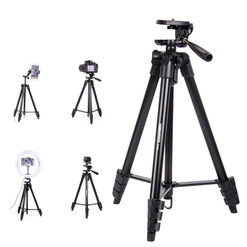 Алюминиевый 3-секционный трехходовой поворотный штативы для мобильных телефонов, 63 дюйма